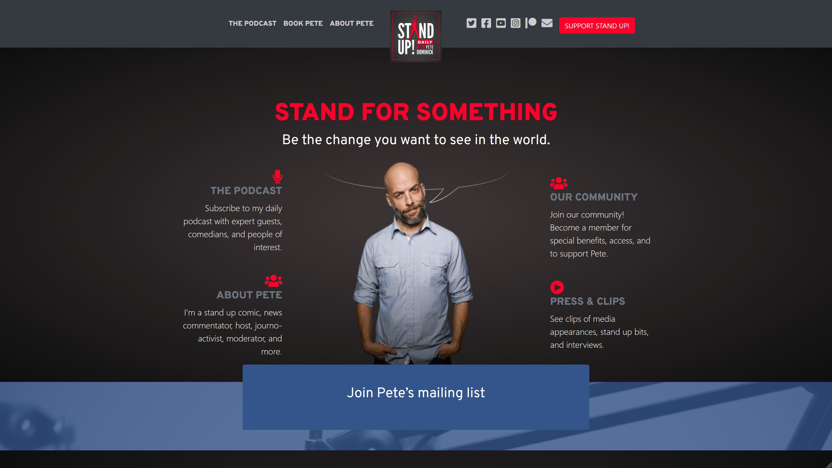 Pete Dominick hosts a popular, daily podcast with thousands of downloads per day and a dedicated fanbase of paid subscribers. We helped him redesign his logo and refresh his brand across social media and establish a simplified website.